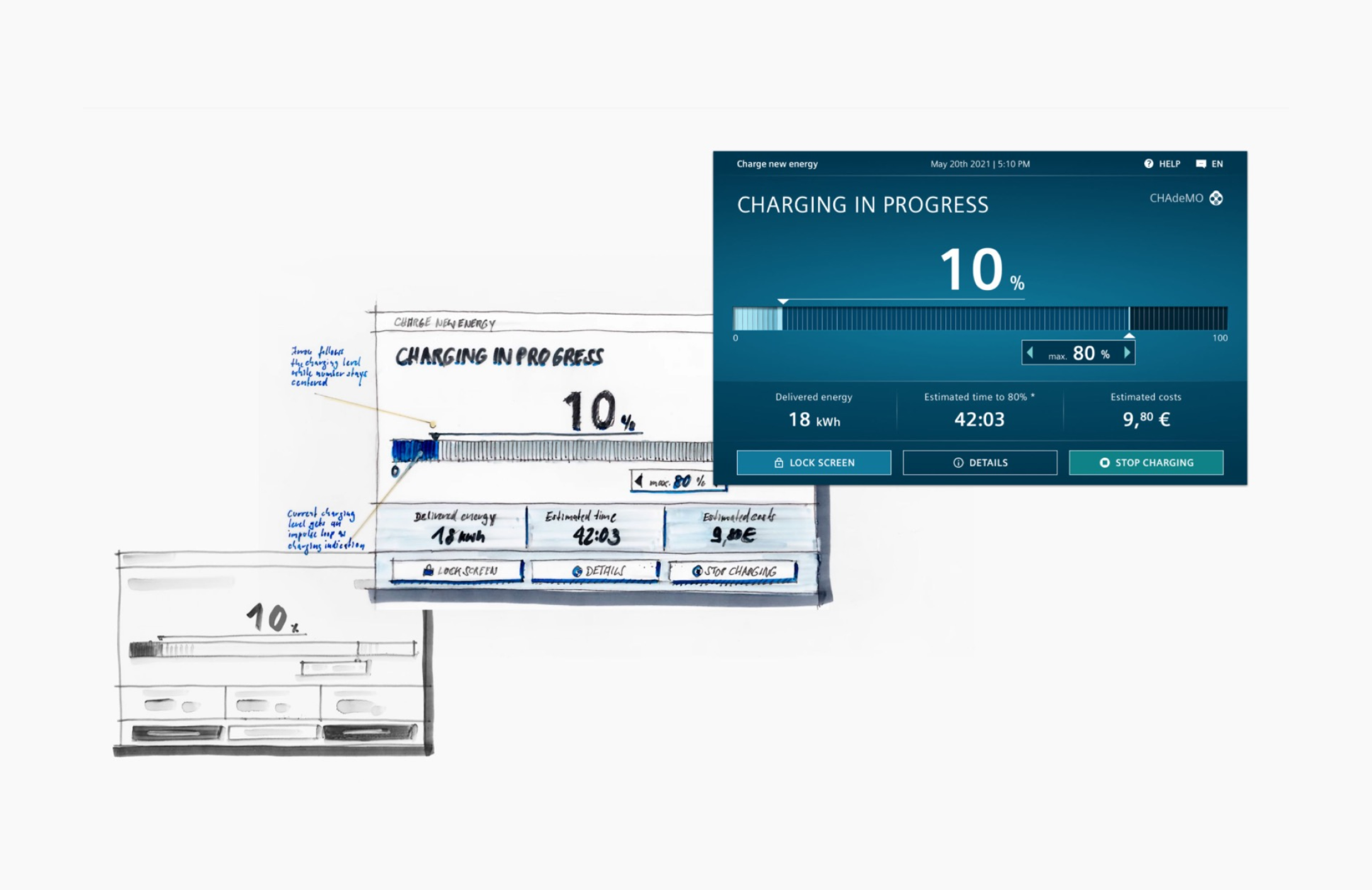 A design system is a collection of UI components, design standards and principles that make it possible to design solutions more efficiently and create consistency across products. This avoids design inconsistencies and helps different teams to implement the design more quickly and efficiently. The basis for the development of this system was the SICHARGE D fast charging station from Siemens, which later became the basis for the development of other charging stations series.