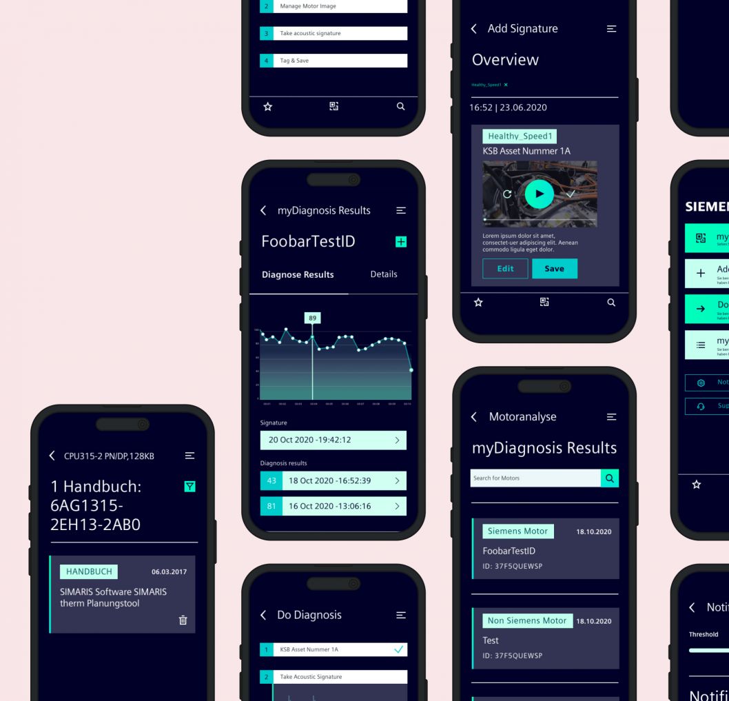 The Siemens SIOS-app was designed to make maintaining and repairing of the machinery easier for service technicians and maintenance staff. In collaboration with Siemens and external partners, we co-created time-saving features to ensure that the app efficiently supports actual workflows. User-friendly features such as barcode scanning enable simple and fast document access directly at the affected machine, helping users find important information quickly.